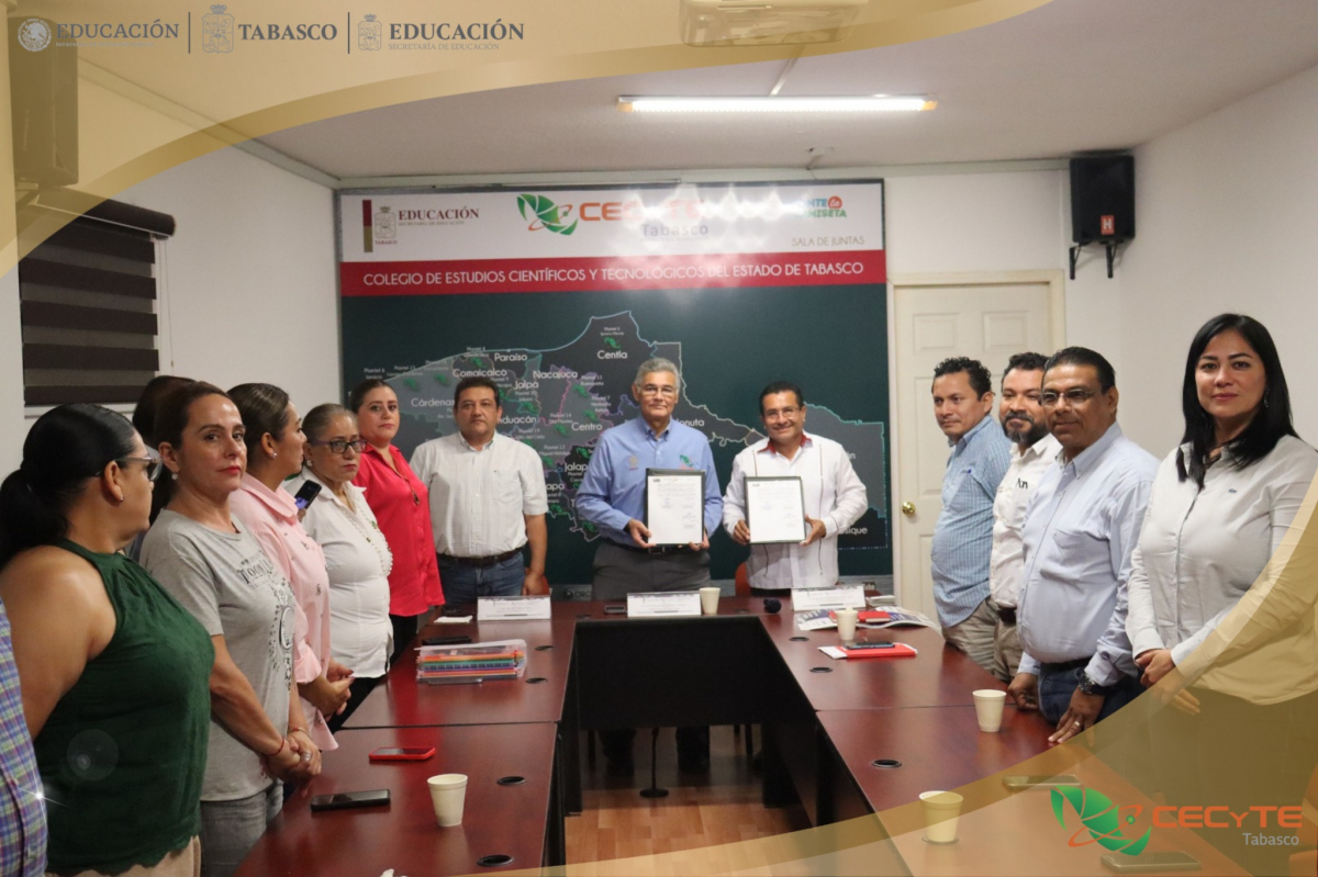 Acompañaron a la firma de este importante instrumento de colaboración, directivos del CECyTE Tabasco.